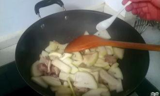 4. 蒲瓜炒肉片:搭配猪肉、青椒、洋葱等食材,色香味俱佳。